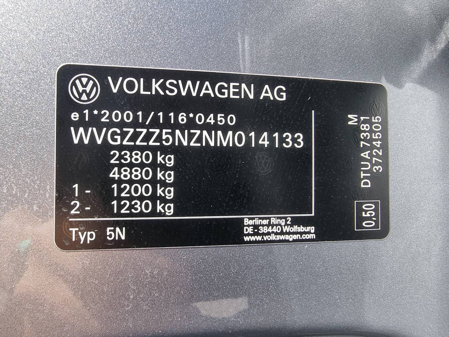 VIN: WVGZZZ5NZNM014133