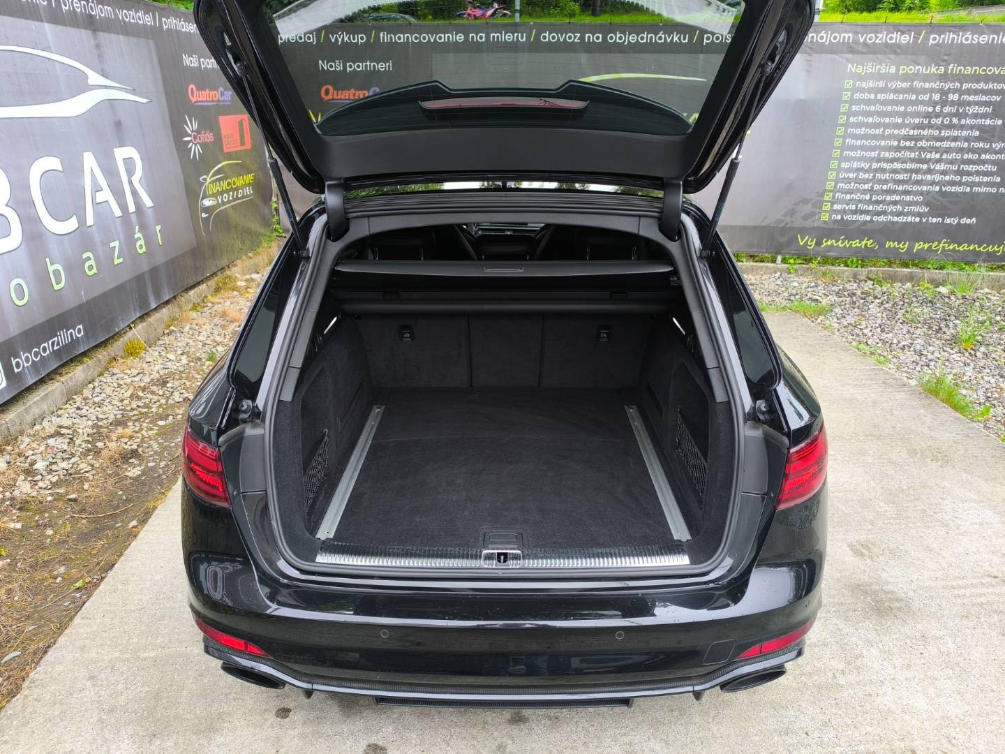 Elektrické ovládanie kufra, Asistent rozjazdu do kopca, Kontrola mŕtveho uhla, Audi smartphone interface - umožňuje prepojenie smartfónu s vozidlom a komfortné zobrazenie obsahu prostredníctvom USB pripojenia na MMI-displeji; ovládanie je možné cez MMI prípadne hlasom prostredníctvom smartfónu; prepojenie s Apple iPhone (minimálne iOS9) môže byť bezdrôtové, Bezpečnostný stĺpik volantu, Bezrámové vnútorné spätné zrkadlo s automatickou clonou, Čalúnený batožinový priestor s priehradkami, Čelné sklo akustické (zvukovoizolačné), Denné svietenie, Determálne sklá, Elektricky nastaviteľné bederné opierky vpredu, Elektromechanická parkovacia brzda, Integrálny systém hlavových opierok, Kontrola zapnutia bezpečnostných pásov, Kryty vonkajších spätných zrkadiel v hliníkovom matnom vyhotovení, LED svetlomety vpredu vrátane zadných LED svetiel s dynamickými smerovkami vrátane ostrekovačov predných svetiel, Manuálne nastaviteľné spätné zrkadlá, Nárazníky lakované vo farbe karosérie, Opierky hlavy vpredu, Označenie modelu - nápis RS 7 na prednej maske a veku batožinového priestoru, Parkovací systém plus - akustický a optický parkovací systém vpredu a vzadu, RS strešný spojler lakovaný vo farbe vozidla s integrovaným tretím brzdovým svetlom, RS športový podvozok, Zadné sedadlá delené a sklápateľné v pomere 40:20:40 so stredovou opierkou, Úložná sieť pod krytom batožinového priestoru.
