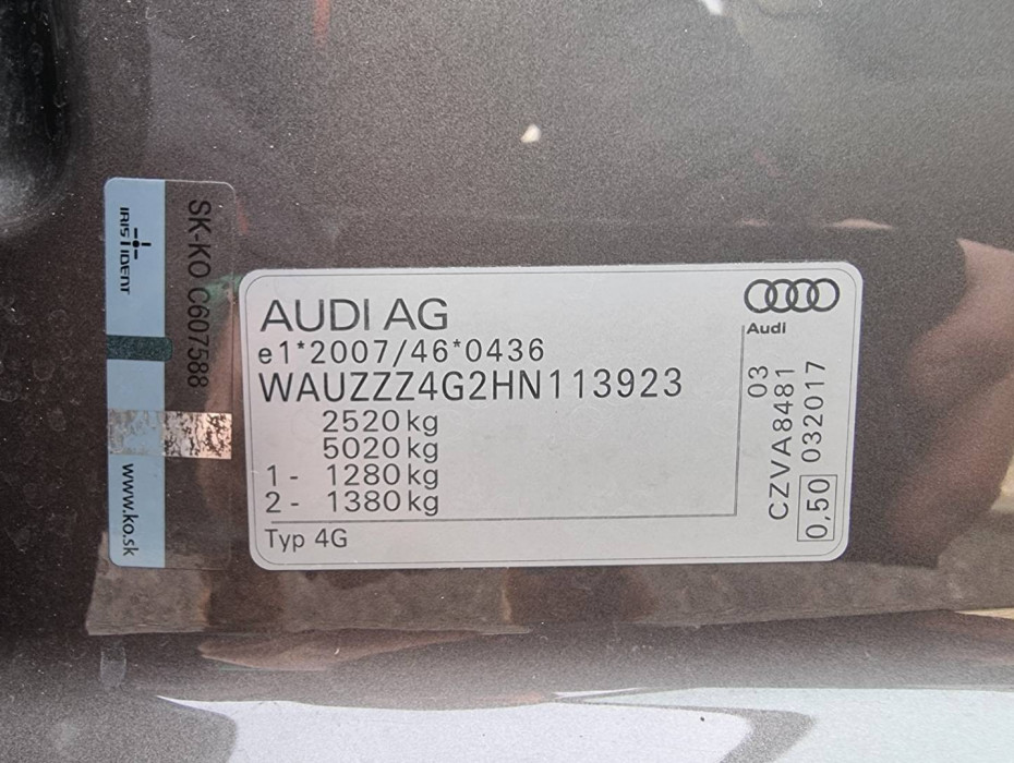 Ovládanie okien na diaľkové ovládanie, Detské poistky okná/ dvere, El.sklopné zrkadlá, Predné a zadné Full LED svetlomety s dynamickými smerovkami, Automatické svietenie, Dosvetlovanie odchodu/ príchodu, Nastaviteľný volant, 6" plne grafický/ farebný MaxiDot displej, Program efektivity, Zobrazovanie rýchlostných limitov, Hlasové ovládanie entertainmentu v CZ, CZ menu, 2x SD karta/ 2x USB/ AUX/ BT- audio vstup, Jukebox - interný HDD 9,9 GB, Prémiové audio+ Subwoofer, Výstraha pri prekročení rýchlosti, Optický parkovací systém, Offroad displej so zobrazovaním náklonu, Protikolízny systém Audi braking guard, Touchpad, El.ručná brzda, Autohold, El.kontrola zjazdu zo svahu, Nastaviteľný režim jazdy - Audi drive select, Aktívne opierky bokov/ stehien/ bedier, El.nastaviteľná dĺžka sedákov, Zadná lakťová opierka, 2.rada sedadiel sklopná do roviny, Originál 20" hliníkové disky, Automatické sťahovanie roletky kufra, Hliníkové koľaje kufra s kotviacimi modulmi,