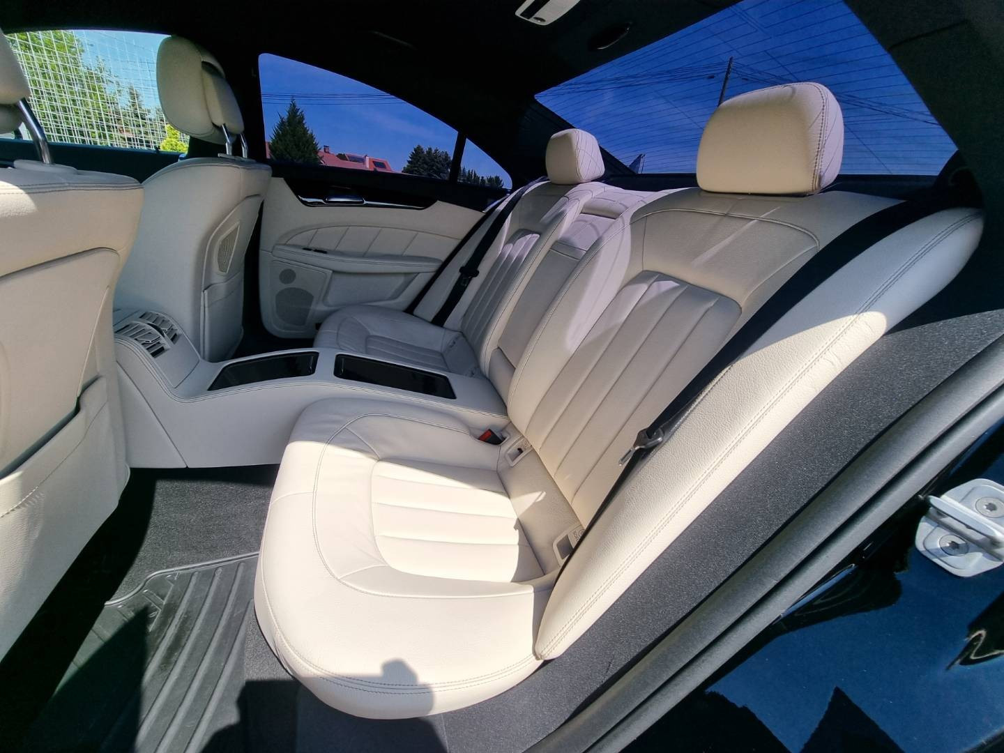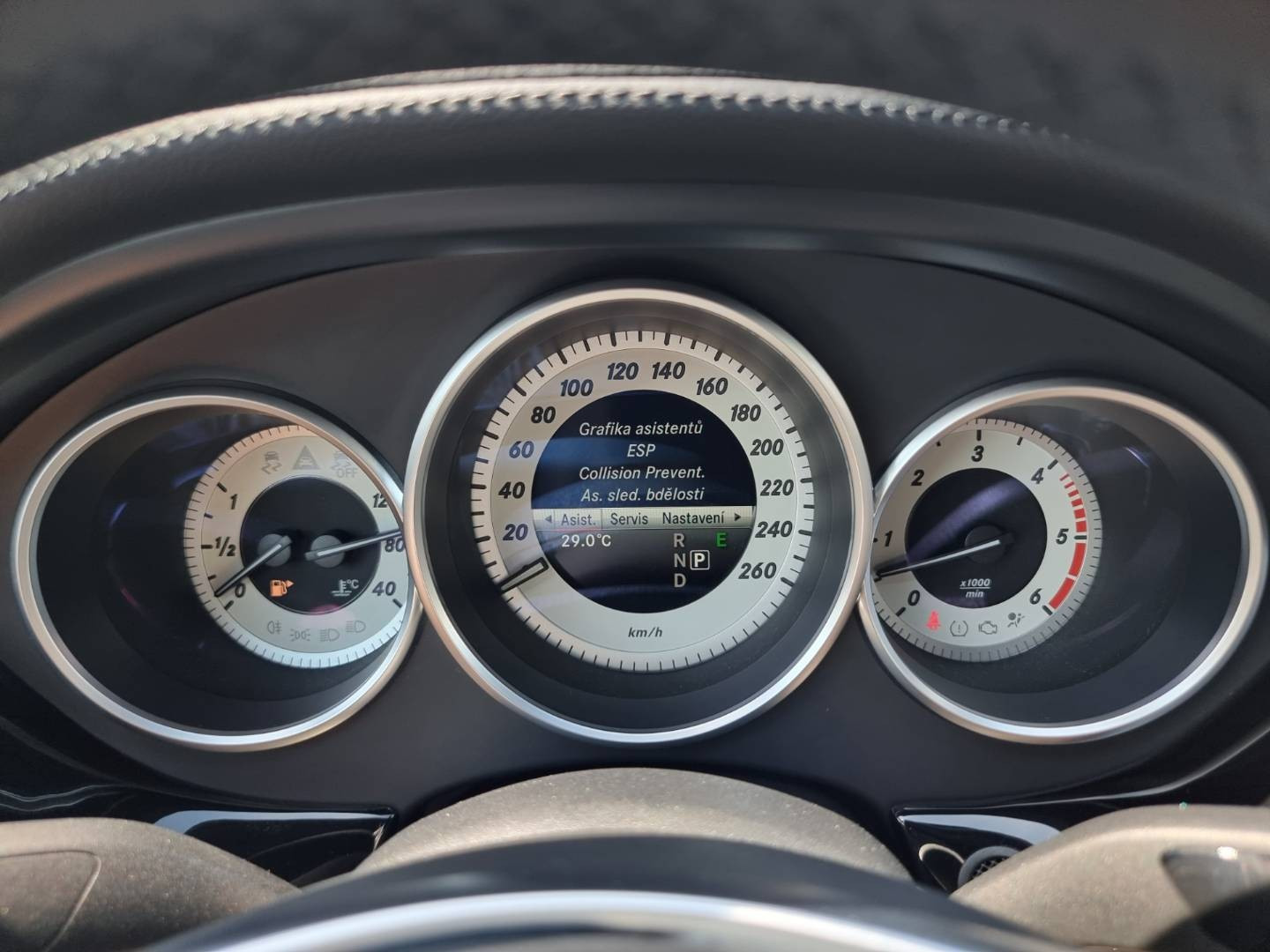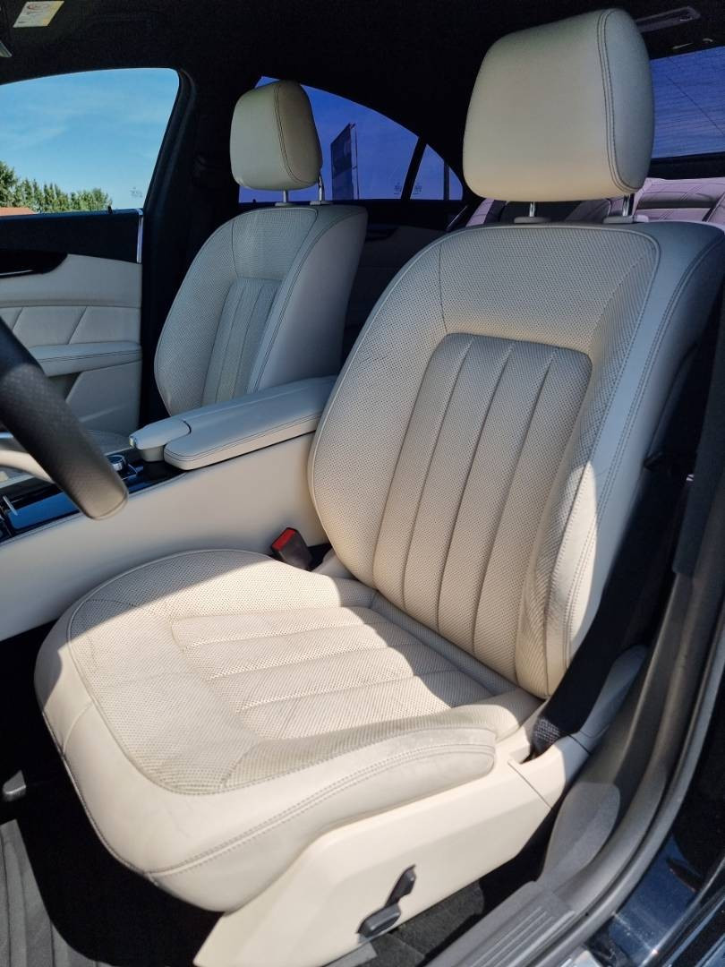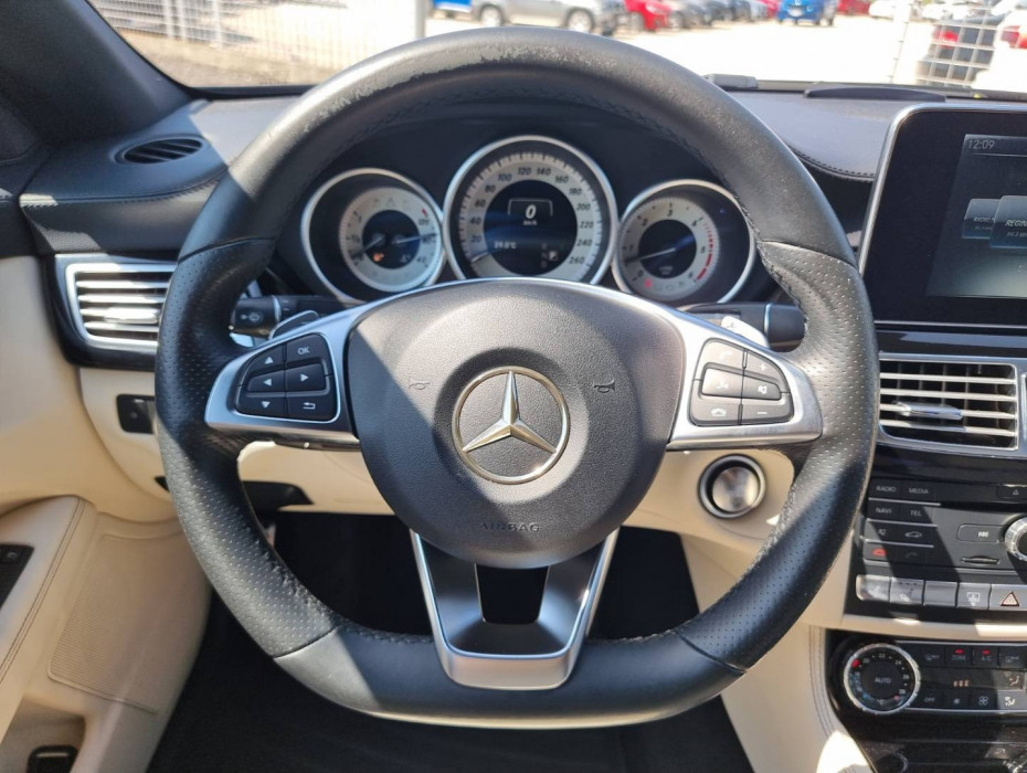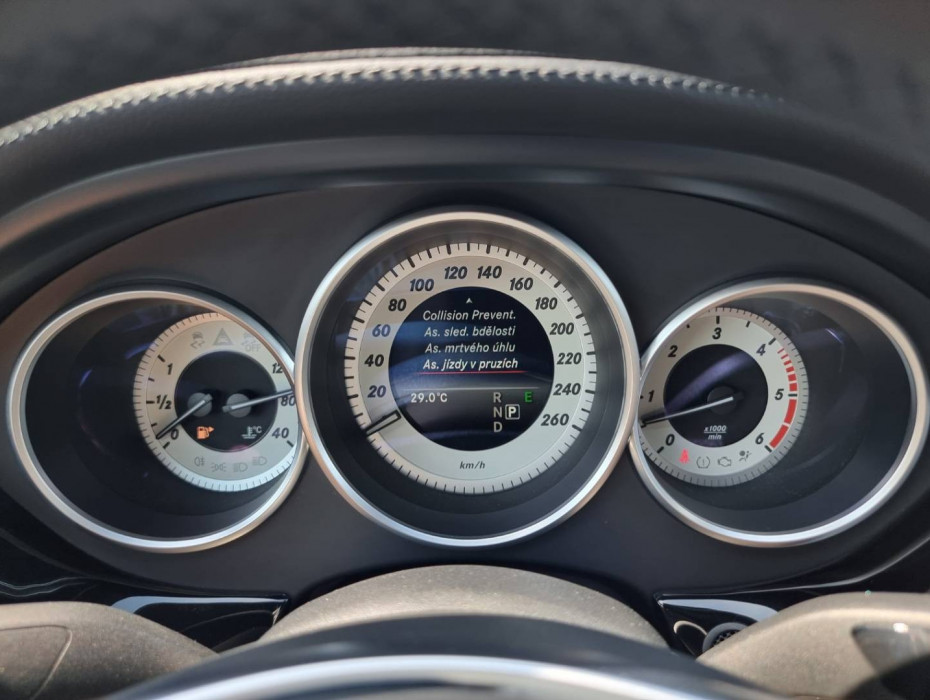 Ovládanie okien na diaľkové ovládanie, El.sklopné zrkadlá, Detské poistky okná/ dvere, Automatické svietenie, Inteligentné Multibeam LED svetlomety, Dosvetlovanie odchodu/ príchodu, Zadné LED svetlomety, Tripling, Nastaviteľný volant, Limiter, SD karta/ 2x USB/ BT- audio vstup, Nastaviteľný režim radenia, E/ S/ M, ECO režim, Nastaviteľný režim jazdy Sport/ Comfort, El.roletka zadného okna, Optický parkovací systém, 4x kamera s 360' zobrazením, Zadná lakťová opierka, Bedrová opierka, Interiér v elegantnej svetlej koži s perforáciou a čiernou stropnicou, Gumené rohože, Protikolízny systém Collision Prevention Assist Plus, Originál 18" AMG hliníkové disky, Textilné AMG koberce,
