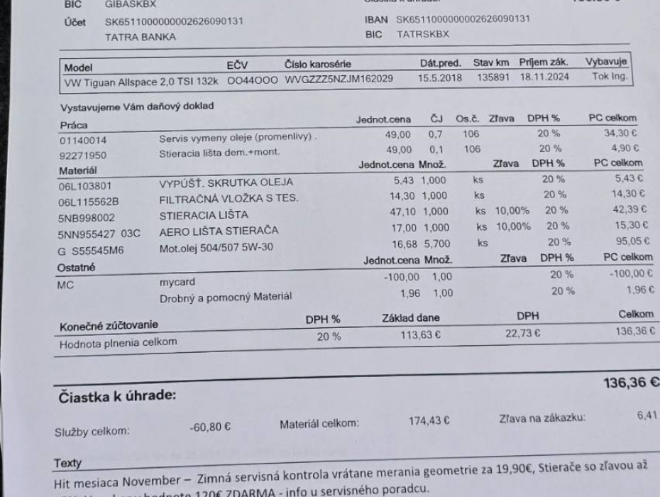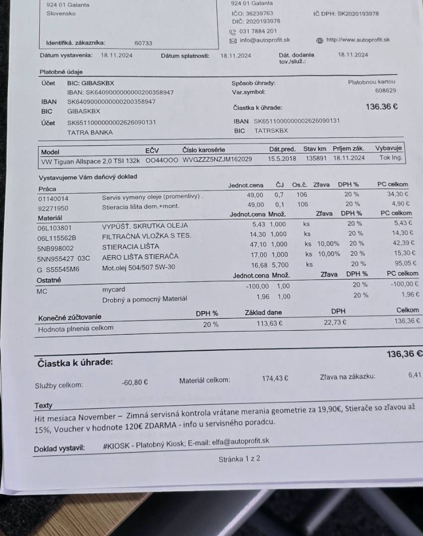 Možnosťúveruužod0%akontácie,Možnosťprevzatiavášhovozidlaakoakontáciu,Možnosťvýmenyvozidlastarézanové,Garanciastavukilometrov,PravidelnýservisibaVW/Kompletvýpiskautu..,Vozidlojevzánovnomstave,po2 majitelovi.Navozidlesúkompletnovéprednéajzadnébrzdy,novézimnégumy....Poslednýservis136.000km(kompletolejovýservis+prehliadkavozidla-AutoprofitGA)VozidlojeužnaslovenskýchŠPZ...