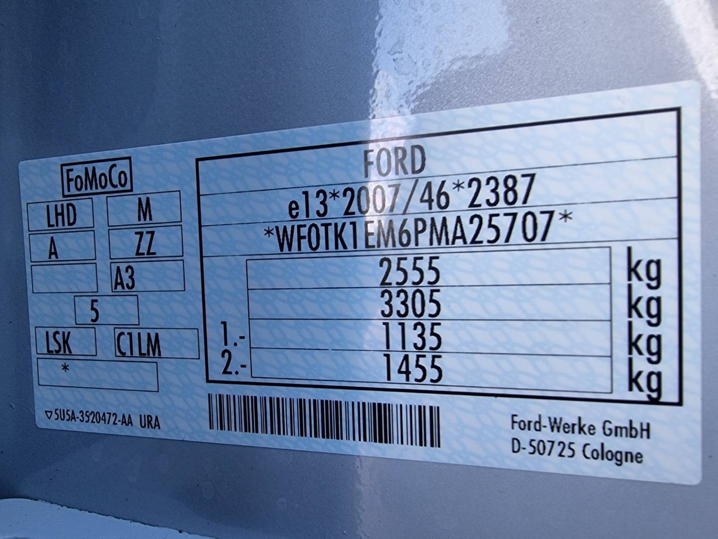 VIN: WF0TK1EM6PMA25707
