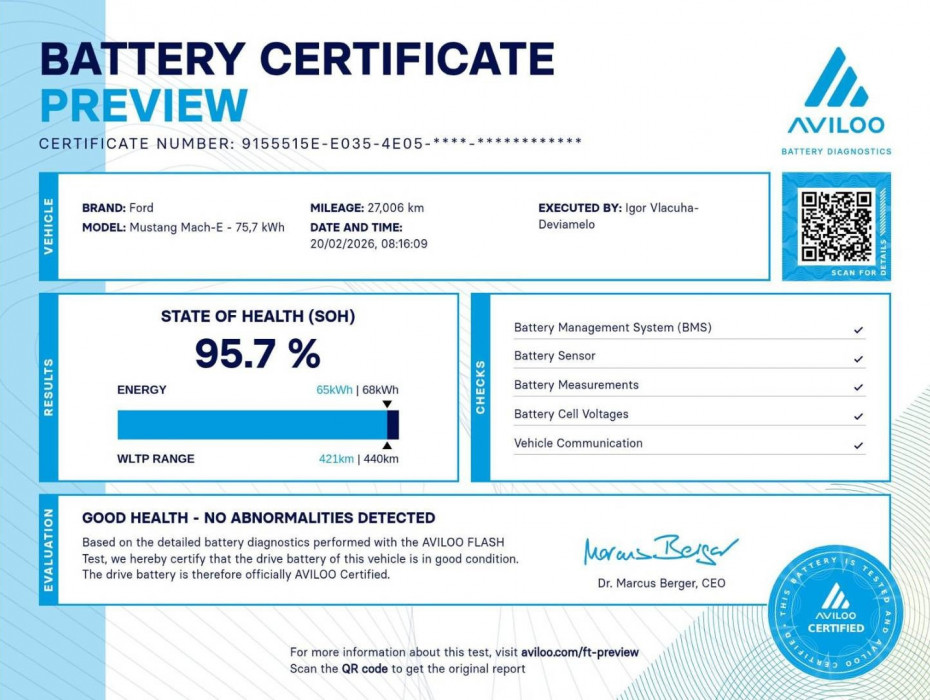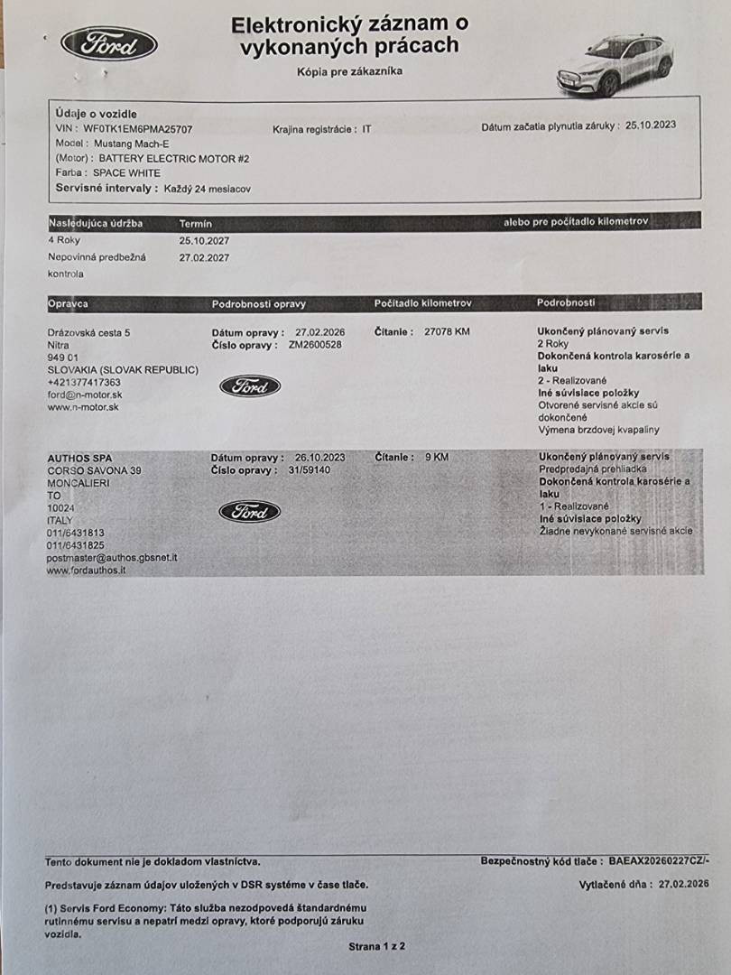 Možnosť úveru už od 0 % akontácie, Možnosť prevzatia vášho vozidla ako akontáciu, Možnosť výmeny vozidla staré za nové, Garancia stavu kilometrov, Pravidelný servis, ZÁRUKA na batériu a komponenty vysokonapäťového systému 8 ROKOV (160.000km), Možnosť odpočtu DPH, Cena vozidla 23.982,-€ bez DPH, Cena vozidla KOMPLET s TP+ ŠPZ, Test zdravia batérie SOH - 95,7%, Aktuálne po servisnej prehliadke v autorizovanom servise Ford,