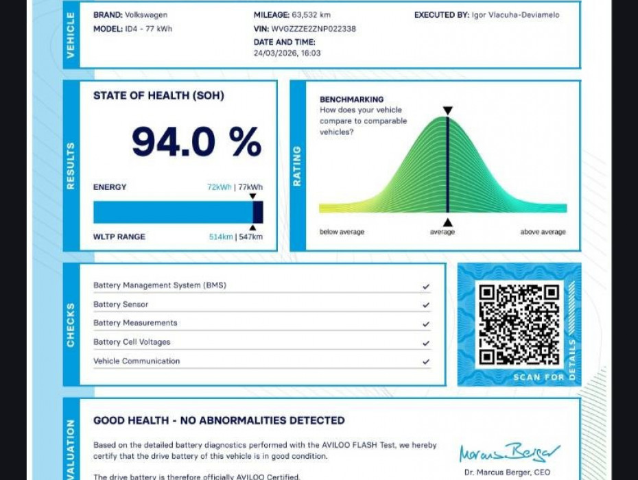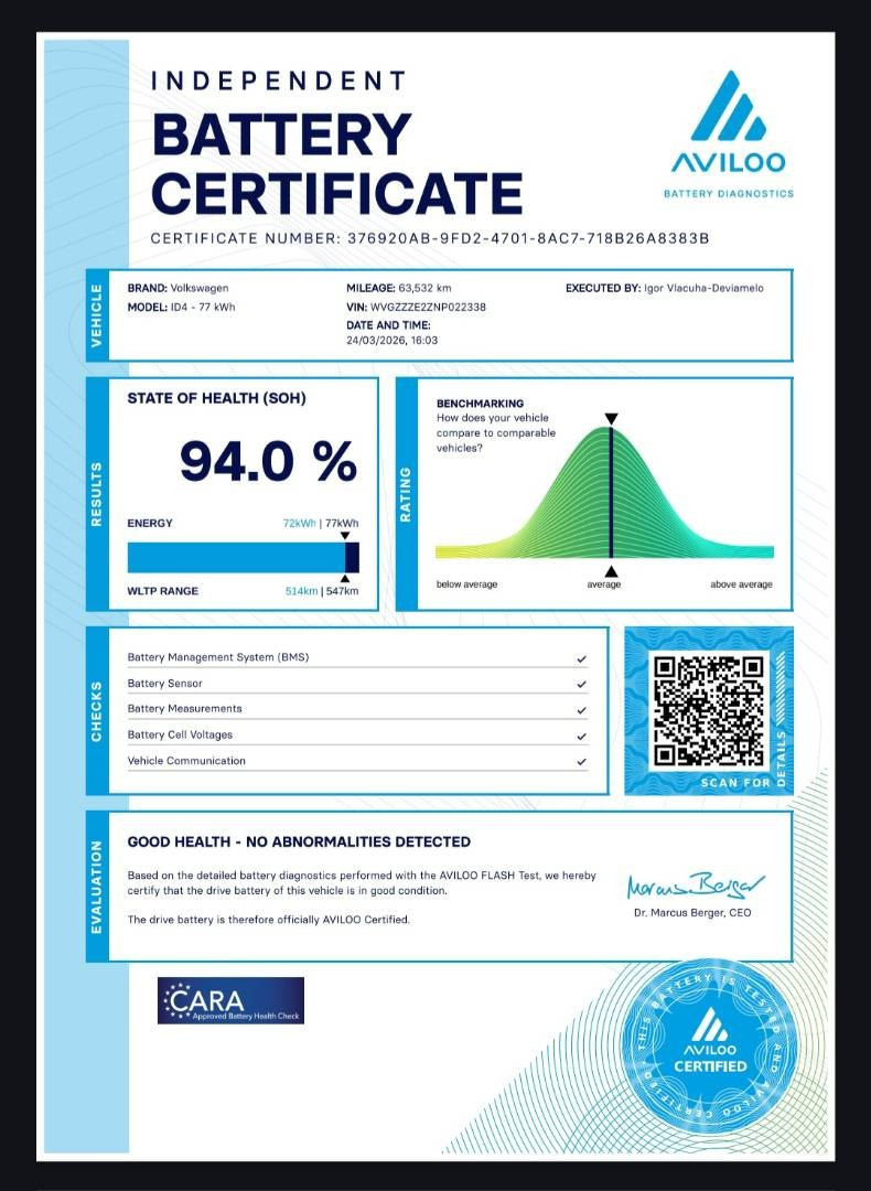 -SoH / Zdravie batérie 94% -MOŽNOSŤ ÚVERU UŽ OD 0% AKONTÁCIE -TOP STAV, NEBÚRANÉ,PÔVODNÝ LAK NA CELOM AUTE -Vozidlo je ako nové !!! Bez akéhokoľvek poškodenia !!! -2022 -FULL VÝBAVA -IBA 63.000KM -SERVIS LEN VW, PO PRVOM MAJITEĽOVI -Zimná + letná sada originál R19 -Prehliadka a ďalší servis o 177 dní