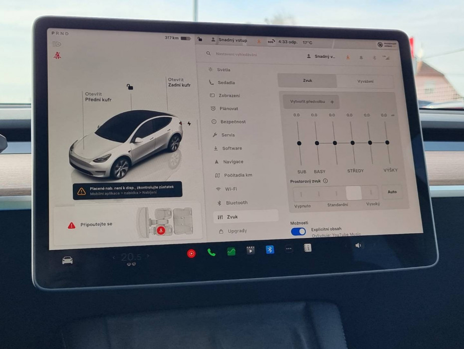 Full LED svetlomety s MATRIX funkciou, Asistent diaľkových svetiel, Zadné LED svetlomety, El.nastaviteľný volant, Tripling, Detské poistky okná/ dvere, Sentry mód - v prípade potreby nahráva video exteriériu/ interiériu na 128GB USB, Nastaviteľný režim akcelerácie/ riadenia/ zastavenia, Plánovač nabíjania, Autopilot, Výstražný protikolízny systém, Automatické zatváranie okien pri zamknutí vozidla, Ovládanie/ monitorovanie vozidla mobilom - MobilKey, Automatické smerové svetlá, LED podsvietenie interiéru, CZ menu, Hlasové ovládanie entertainmentu v angličtine, Interiérová/ 6x exteriérová kamera, Standard Connectivity, Inteligentné režimy klimatizácie, Bezdrôtové nabíjanie telefónu, 2x USBc charge, Pripojenie na Wifi, Internetový prehliadač, Aplikácie Spotify/ Netflix/ YouTube/ ...., ToyBox, Arkády, Aktívne bedrové opierky, Zadná lakťová opierka, Dvojité dno kufra, Kompletná kabeláž vrátane rýchlonabíjačky, 19" hliníkové disky, Polohovateľná/ do roviny sklopná 2.rada sedadiel, Tepelné čerpadlo,