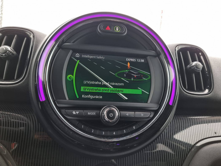 Detské poistky okná/ dvere, El.sklopné zrkadlá, Naklápanie spätného zrkadla pri cúvaní, Automatické svietenie, Predné a zadné LED svetlomety, Adaptívne svetlomety, Dosvetlovanie odchodu/ príchodu, Tripling, Nastaviteľný volant, Limiter, Slovenské menu, hlasové ovládanie entertainmentu v Angličtine, USB/ AUX/ BT- audio vstup, Optický parkovací systém, MINI Connected, Výstražný protikolízny systém, Výstraha pri prekročení rýchlosti, Programovateľná nezávislá ventilácia, Výstraha pred vstupom chodcov do dráhy vozidla, MINI Country Timer, Personalizácia vozidla ( 3x vodič + hosť), Displej zobrazenia prenosu sily, e- Manuál, El.ručná brzda, Interiér v kombinácii textil- koža, Výškovo nastaviteľné sedadlá, Nastaviteľná dĺžka sedákov, 2x USB charge, Ochranná vanička kufra, Dvojité dno kufra, 2.rada sedadiel polohovateľná/ sklopná do roviny, Originál 17" hliníkové disky, Chrómované olemovanie predných a zadných svetlometov, 3x Isofix, Aktívne ambientné LED orámovanie hl.displeja, Zobrazovanie rýchlostných limitov, TMC- dopravné hlásenia