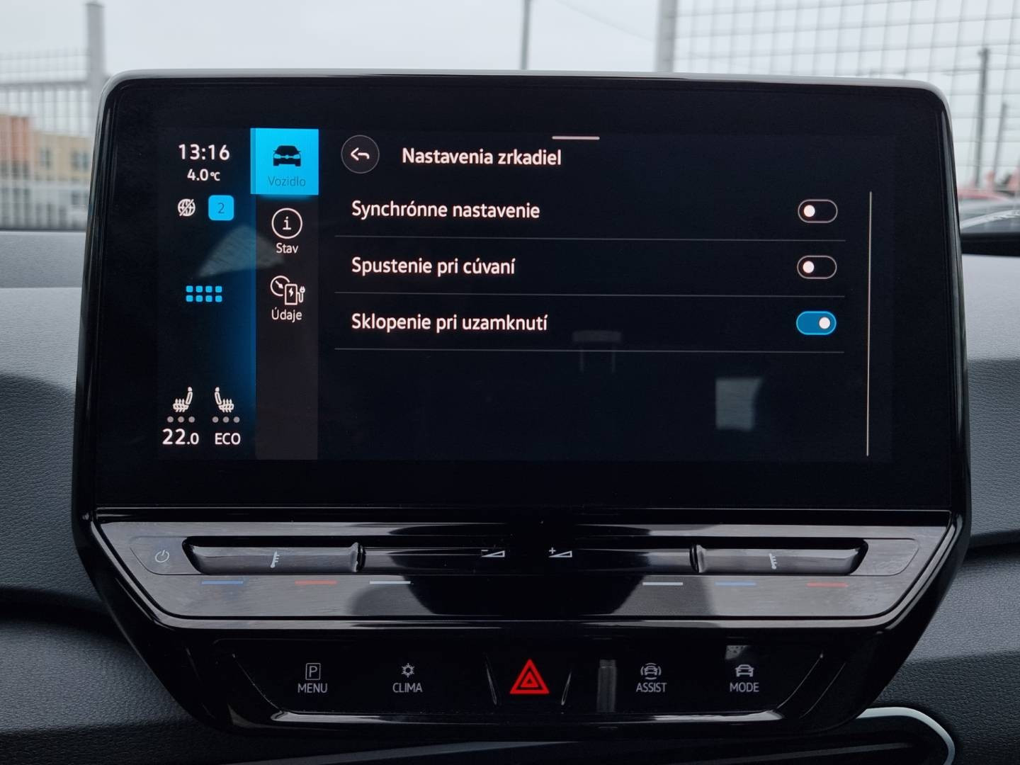 Ovládanie okien na diaľkové ovládanie, Detské poistky okná/ dvere, El.sklopné zrkadlá, Naklápanie spätného zrkadla pri cúvaní, Predné a zadné LED svetlomety, Automatické svietenie, Funkcia Coming/ Leaving Home, Tripling, Nastaviteľný volant, Limiter, Slovenské menu, Hlasové ovládanie entertainmentu v CZ, Nastaviteľný režim rekuperácie, Optický parkovací systém, Funkcia manévrovacieho brzdenia, ID.Light, Pokročilé LED podsvietenie interiéru, MirrorLink, e- Manuál, Nezávislé programovateľné kúrenie/ vetranie, ECO asistent, Protikolízny systém Front Assist, Funkcia Battery Care Mode, Personalizácia vozidla, Nastaviteľný režim jazdy, Inteligentná 2.zónová klimatizácia s funkciou AirCare, 2x USBc/ BT- audio vstup, Výškovo nastaviteľné sedadlo vodiča, 3x Isofix, Originál 18" hliníkové disky, Kompletná kabeláž vrátane rýchlo nabíjacieho kábla, 2x USBc charge, Vozidlo má tepelné čerpadlo!