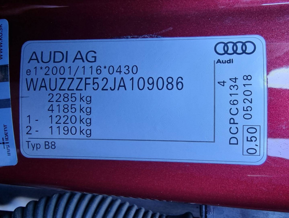 Ovládanie okien na diaľkové ovládanie, Detské poistky okná/ dvere, Predné a zadné Full LED svetlomety s dynamickými smerovkami, Automatické svietenie, Dosvetlovanie odchodu/ príchodu, Tripling, Nastaviteľný volant, Limiter, CZ menu, Hlasové ovládanie entertainmentu v CZ, MaxiDot displej, Nastaviteľný režim jazdy - Audi drive select, Výstraha pri prekročení rýchlosti, Optický parkovací systém, Asistent efektivity, Audi pre sense - protikolízny systém, Automatické prídavné kúrenie, Audio+ Subwoofer, 2x SD karta/ SIM karta/ AUX/ BT- audio vstup, USB charge , Audi Connect, El.ručná brzda, Aktívne bedrové opierky, Nastaviteľná výška/ dĺžka/ sklon sedadiel, Športové sedadlá s výrazným bočným vedením, Interiér v kombinácii textil- koža + čierna stropnica, Zadná lakťová opierka, SKY tunel na lyže, Originál 19" hliníkové disky, El.sklopné ťažné zariadenie,