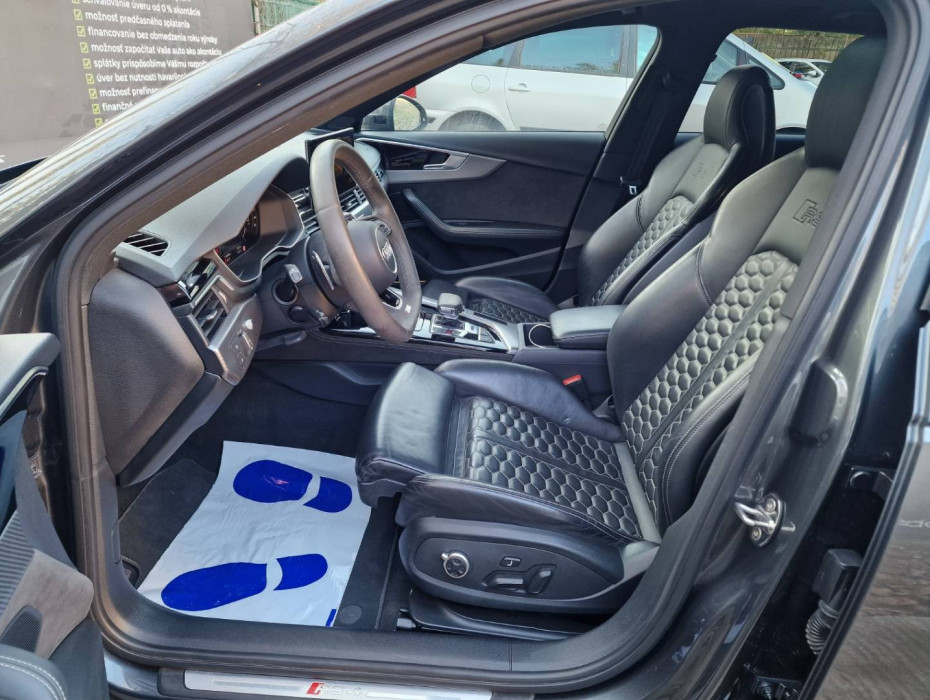 Audi smartphone interface - umožňuje prepojenie smartfónu s vozidlom a komfortné zobrazenie obsahu prostredníctvom USB pripojenia na MMI-displeji; ovládanie je možné cez MMI prípadne hlasom prostredníctvom smartfónu; prepojenie s Apple iPhone (minimálne iOS9) môže byť bezdrôtové, Bezpečnostný stĺpik volantu, Bezrámové vnútorné spätné zrkadlo s automatickou clonou, Čalúnený batožinový priestor s priehradkami, Čelné sklo akustické (zvukovoizolačné), Denné svietenie, Determálne sklá, Elektricky nastaviteľné bederné opierky vpredu, Elektromechanická parkovacia brzda, Integrálny systém hlavových opierok, Kontrola zapnutia bezpečnostných pásov, Kryty vonkajších spätných zrkadiel v hliníkovom matnom vyhotovení, LED svetlomety vpredu vrátane zadných LED svetiel s dynamickými smerovkami vrátane ostrekovačov predných svetiel, Manuálne nastaviteľné spätné zrkadlá, Nárazníky lakované vo farbe karosérie, Opierky hlavy vpredu, Označenie modelu - nápis RS 7 na prednej maske a veku batožinového priestoru, Parkovací systém plus - akustický a optický parkovací systém vpredu a vzadu, RS strešný spojler lakovaný vo farbe vozidla s integrovaným tretím brzdovým svetlom, RS športový podvozok, Zadné sedadlá delené a sklápateľné v pomere 40:20:40 so stredovou opierkou, Úložná sieť pod krytom batožinového priestoru.